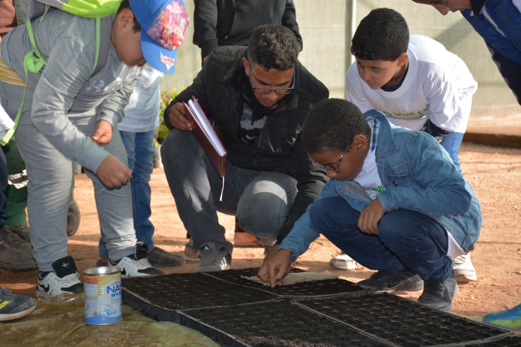 تم إجراء عمليات بذر البذور في المشتل المشترك في مدينة تيزنيت في فترة ما بعد الظهر، حيث حضر الأطفال المشاركون في هذا العمل جلسات تعاونية مع فنيي المساحات الخضراء حول البذور والإنبات. قاموا معاً بزرع ٢٣٠٠ من بذور براشيتون في مشتل مدينة تيزنيت.